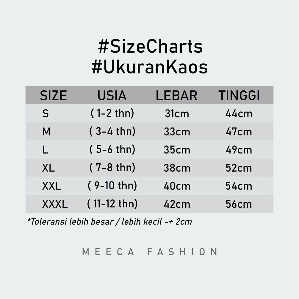 Catatan : Usia tidak bisa dijadikan acuan untuk ukuran kaos, mohon sesuaikan dengan Detail, Ukuran yang sudah kami sediakan.